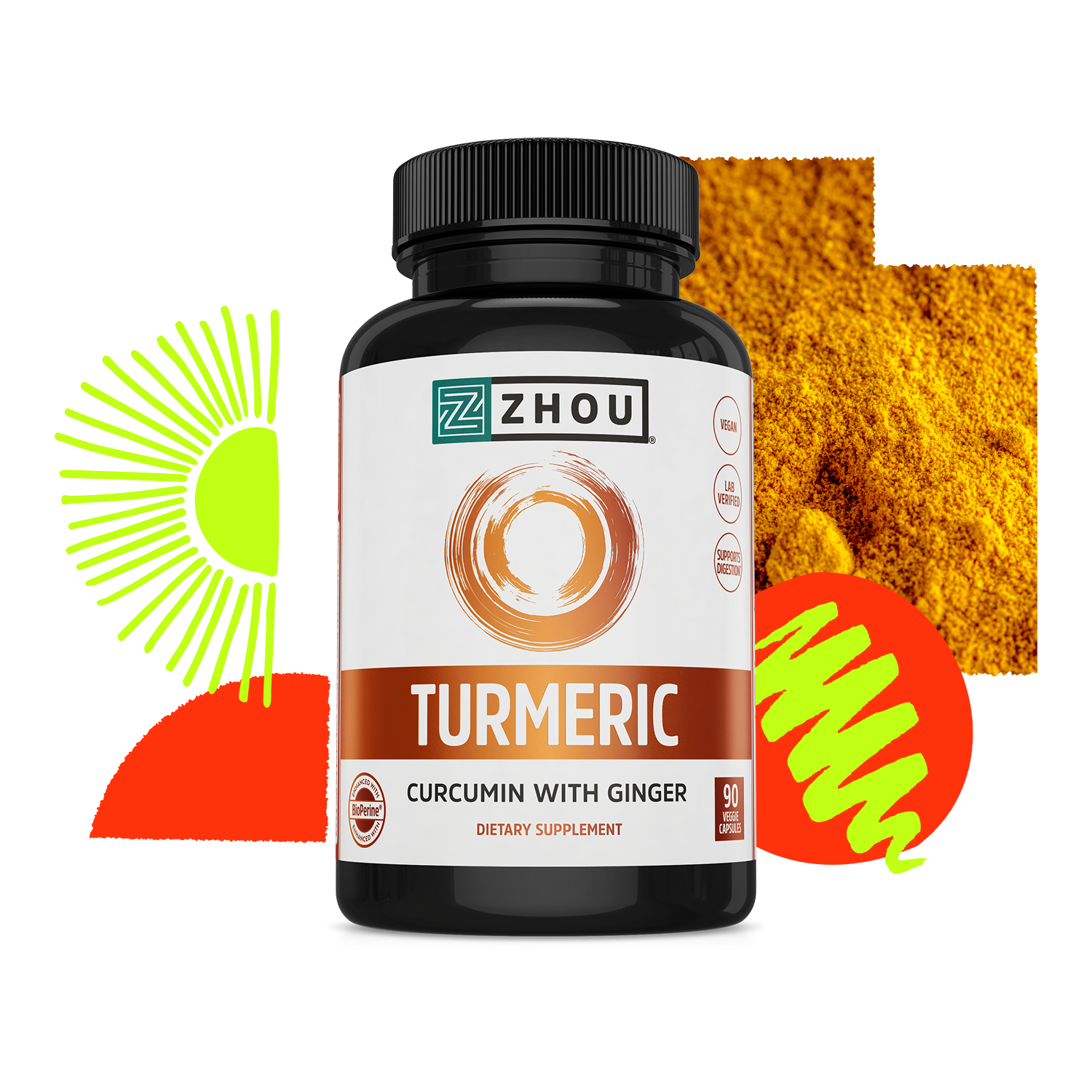 When you need a potent source of curcumin, you want Zhou. Our turmeric delivers 142.5 mg of turmeric root extract, standardized to 95% curcuminoids—so you get as many as possible. -