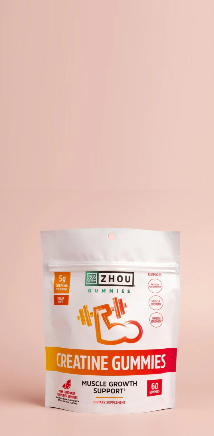 Zhou Creatine Gummy is made with creatine monohydrate, the most researched and trusted form of creatine. We’ve also added vitamin B-12 for an energy boost to get you through those tough workouts.*