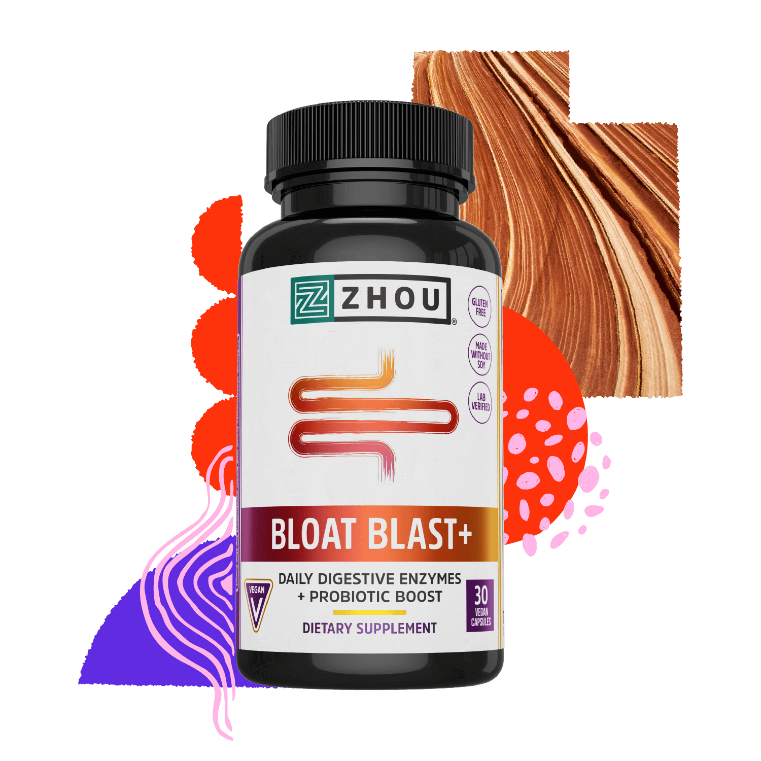 Bloat Blast+ was created to give a one/two punch to gas and bloating, so you don’t have to undo your top button after dinner. A potent combination of enzymes, probiotics and botanicals also work together for digestion support that’ll help you work through even your most cruciferous or decadent meals. -
