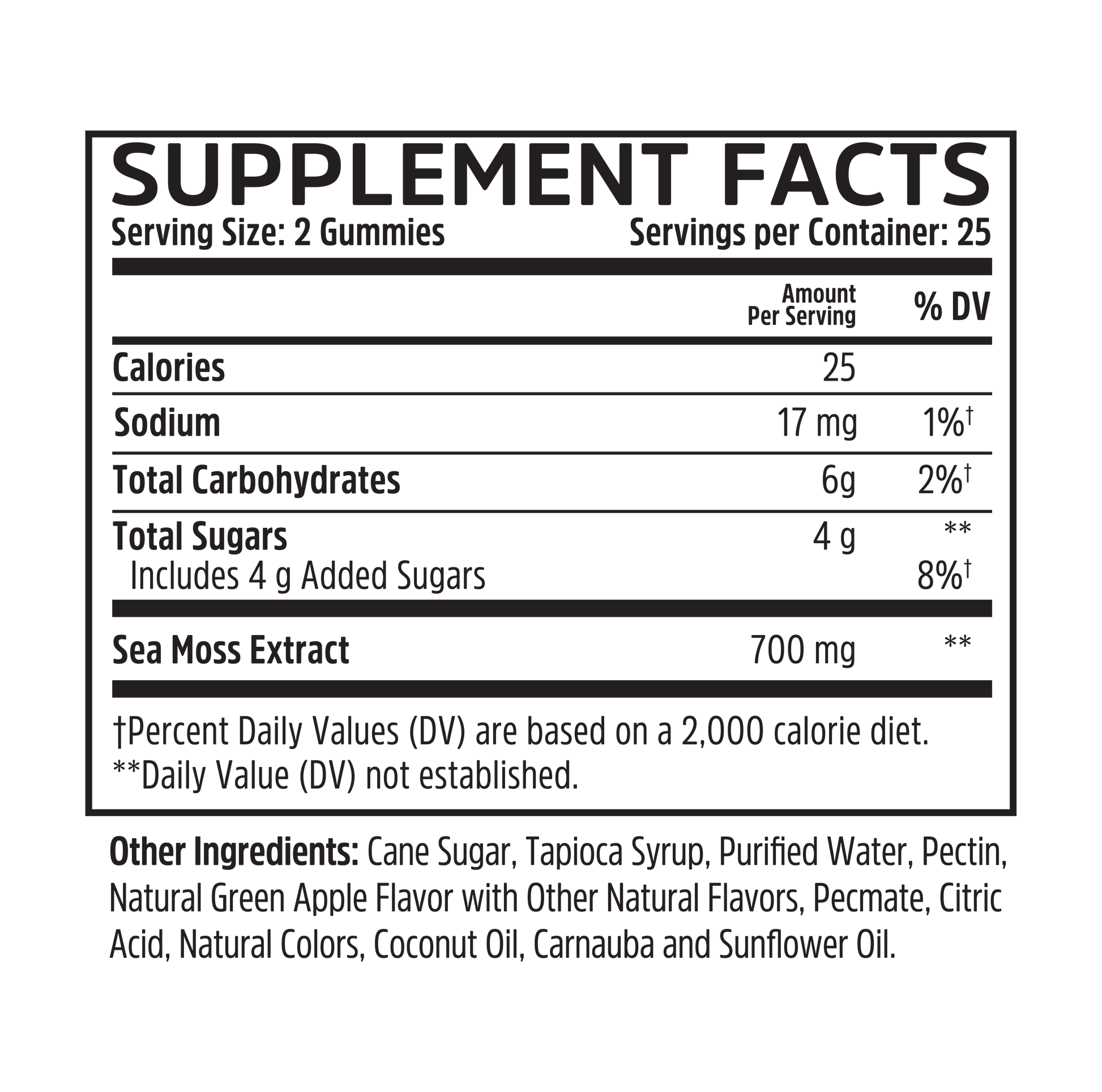 All the benefits—none of the brine. Irish sea moss, known as red seaweed, is packed with nutrients and time-honored wellness support.* Ours comes with a bright green apple flavor you’ll actually look forward to, so it fits seamlessly into your routine.