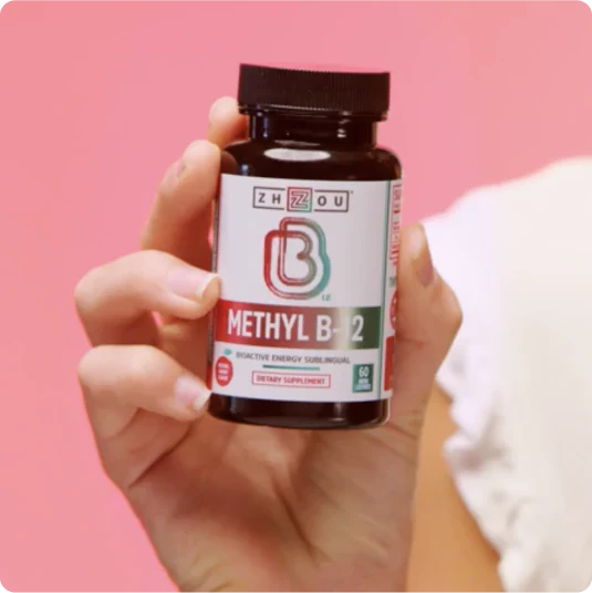 Unlike common cyanocobalamin B12, the methylcobalamin in the Zhou Methyl B12 sublingual is the most bioavailable form of B12 for active energy. Methyl B12 provides optimal absorption and retention by the body so you get the most out of every lozenge. Usually found in animal products, supplementing B12 is especially important for vegans and vegetarians. This essential vitamin may help support memory and focus, nerve function, and a healthier heart.