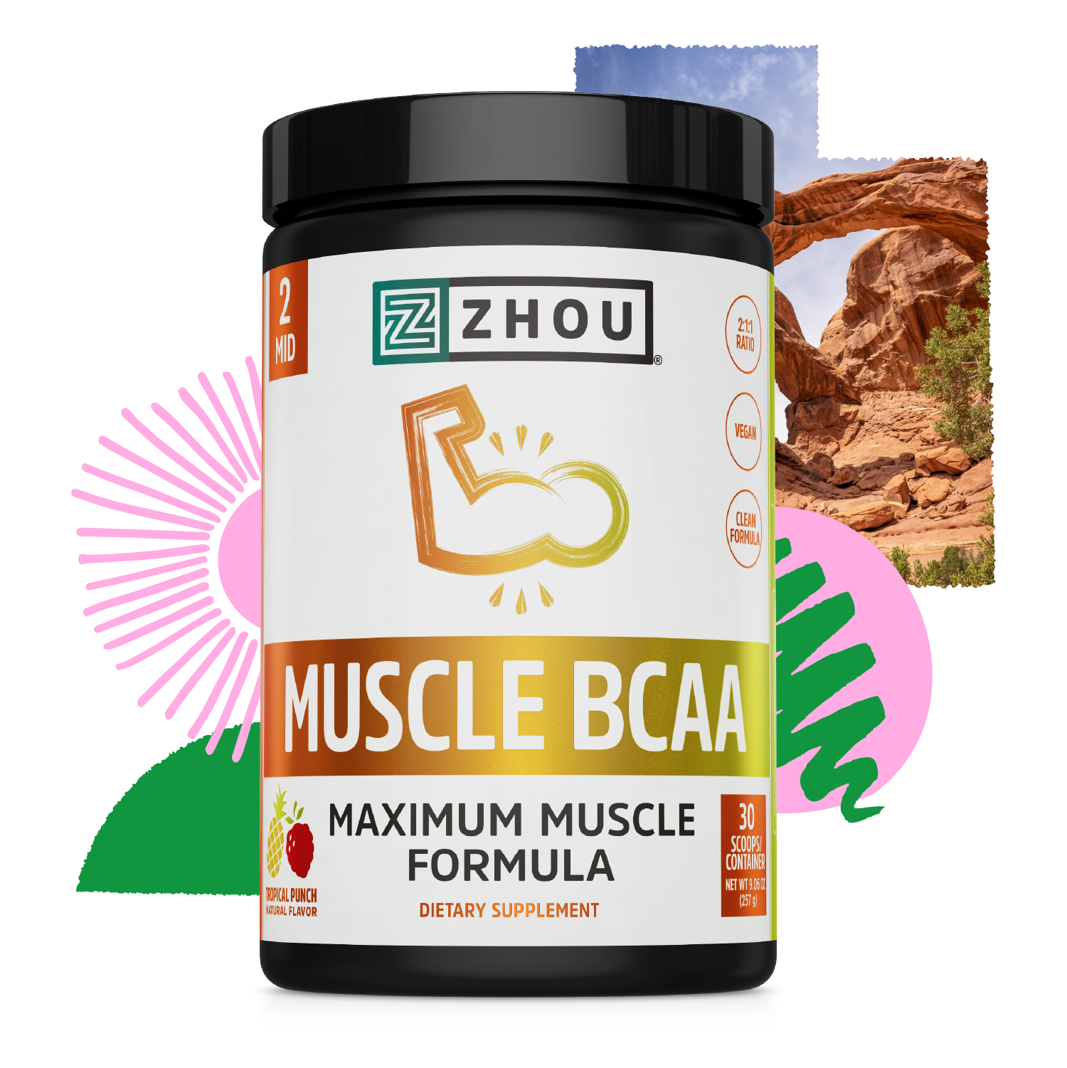 This one’s for the gym rats, the title chasers and the sweat connoisseurs. Muscle BCAA is a vegan 2:1:1 ratio BCAA formula designed to keep you fueled while supporting healthy muscle recovery. Amino acids are often sourced from poultry and duck feathers, but Muscle BCAA only uses high quality amino acids sourced from plants. We've also added 1 billion CFU/g of Bacillus coagulans for a probiotic boost, vitamin C and tart cherry for antioxidant support, and coconut water powder to hydrate and replenish. Just drink, recover and repeat.