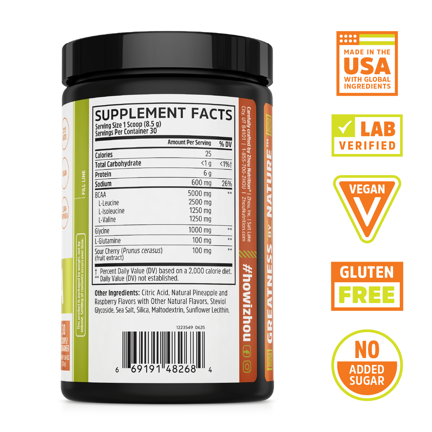 Muscle BCAA is your all-in-one recovery ally—built to fuel performance and help your body bounce back stronger. With 5,000 mg of vegan BCAAs in the optimal 2:1:1 ratio, plus glutamine, tart cherry, and electrolytes, this formula does more than just check the box. Whether you’re lifting heavy, logging miles, or grinding through a tough workout, Muscle BCAA delivers serious support—in a tropical punch flavor that actually hits.