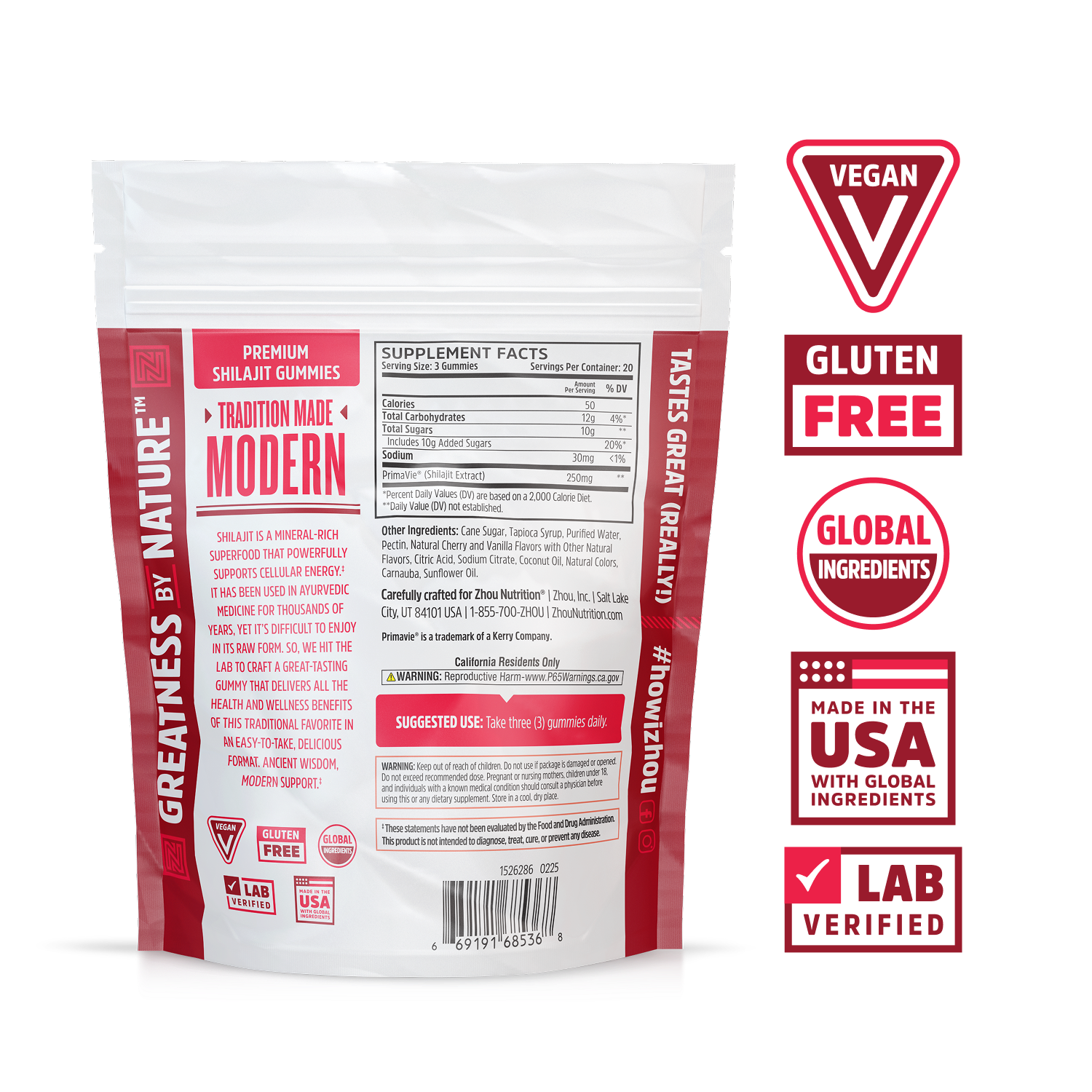 - Made with clinically studied PrimaVie® Shilajit