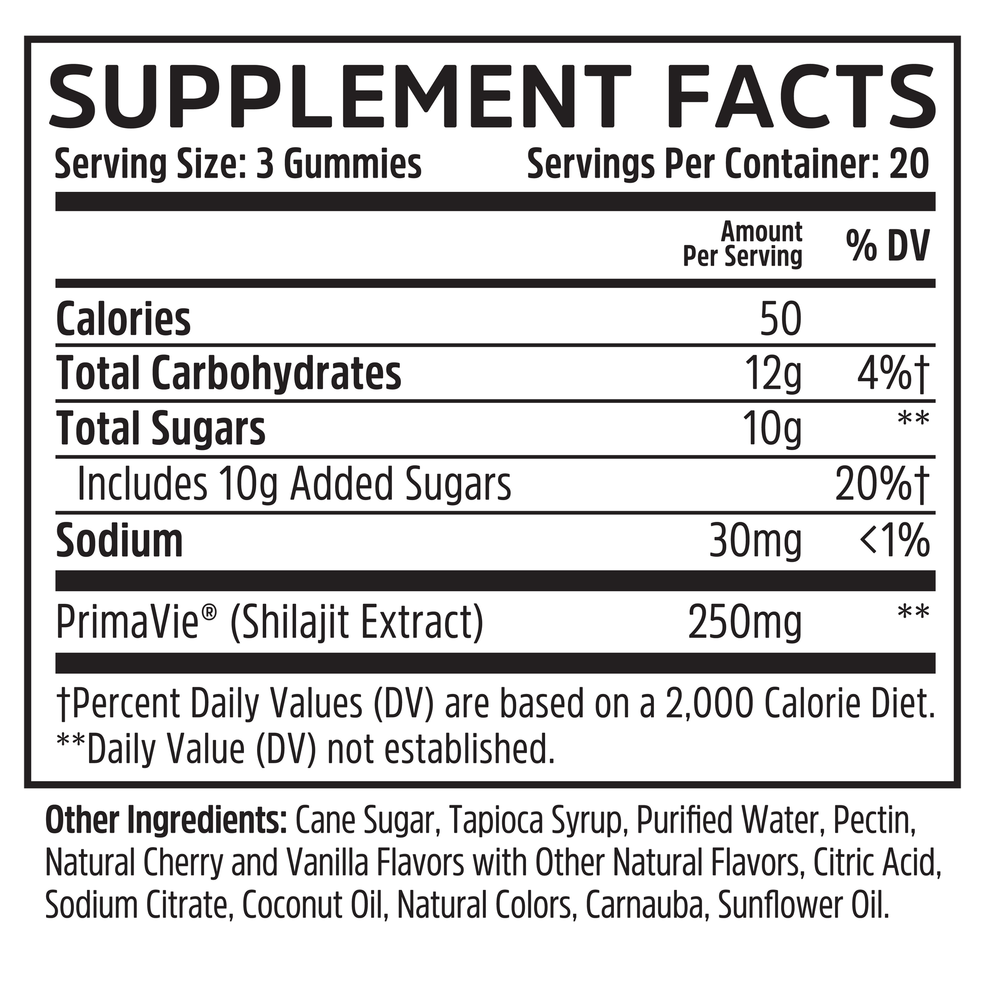 - 250 mg of PrimaVie® Shilajit Extract