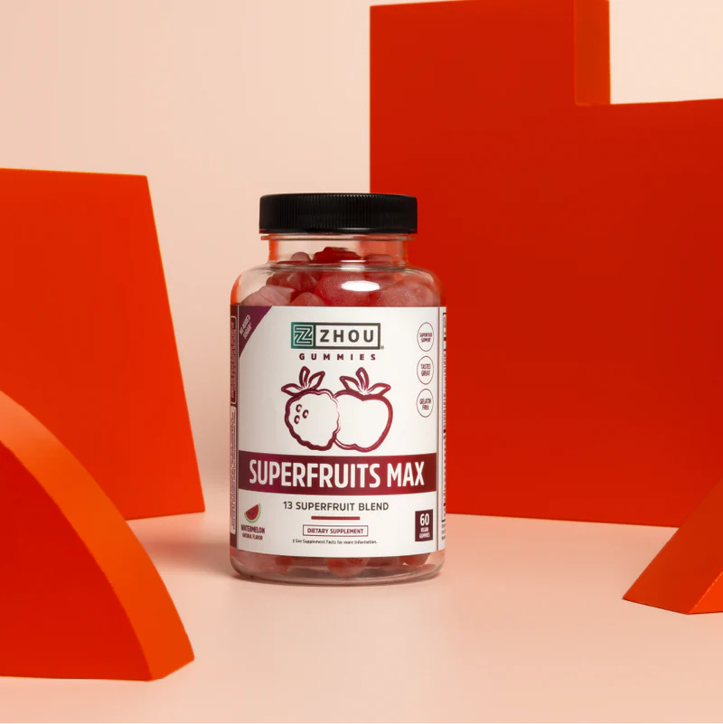 Super-fuel your day with this powerful antioxidant blend in a delicious gummy formula. Superfruit Max features 13 superfruits that are rich in vitamins, minerals and antioxidants. Our blend provides 500 mcg of vitamin A, an important vitamin for immune health. Additionally, the SuperFruit Antioxidant Blend combines the power of fruits such as Acai Berry, Goji Berry and Pomegranates to fuel your day with beneficial antioxidants, which are known as nature’s free radical fighters. Superfruit Max is a superfood, so it’s an excellent option for those looking to support their health with a nutrient-rich supplement. The delicious watermelon flavor is natural, and our gummies are made with no added sugar and are vegan-friendly, making it easy to share the antioxidant love with everyone.