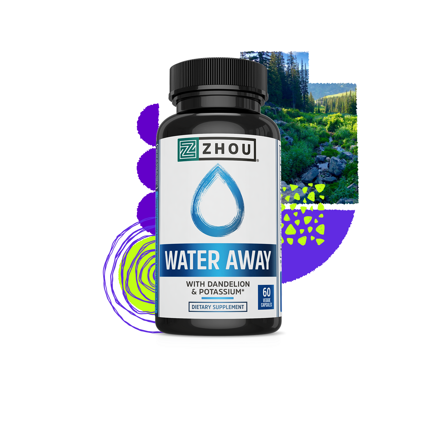Green Tea Leaf and Apple Cider Vinegar are included in Water Away, and are designed to support healthy metabolism and a healthy weight.